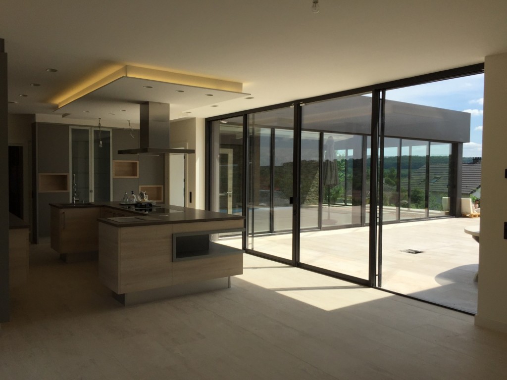 - série luméal minimal permet de concevoir des baies coulissantes de grandes dimensions, du sol au plafond, c'est le premier coulissant à ouvrant caché avec seulement 68mm d'alulminium visible
